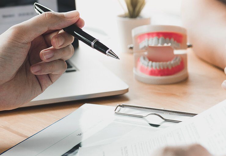 成人矯正では、歯や顎の状態を正確に把握することが大切です。そのため、口腔内スキャナーで歯並びを立体的に記録し、歯科用CTによるレントゲン撮影、口腔内写真、咬み合わせに関する機能検査などを行います。もしむし歯や歯周病といった問題が見つかった場合は、そちらの治療を優先して口腔内の健康を整えたうえで矯正治療に進んでいきます。